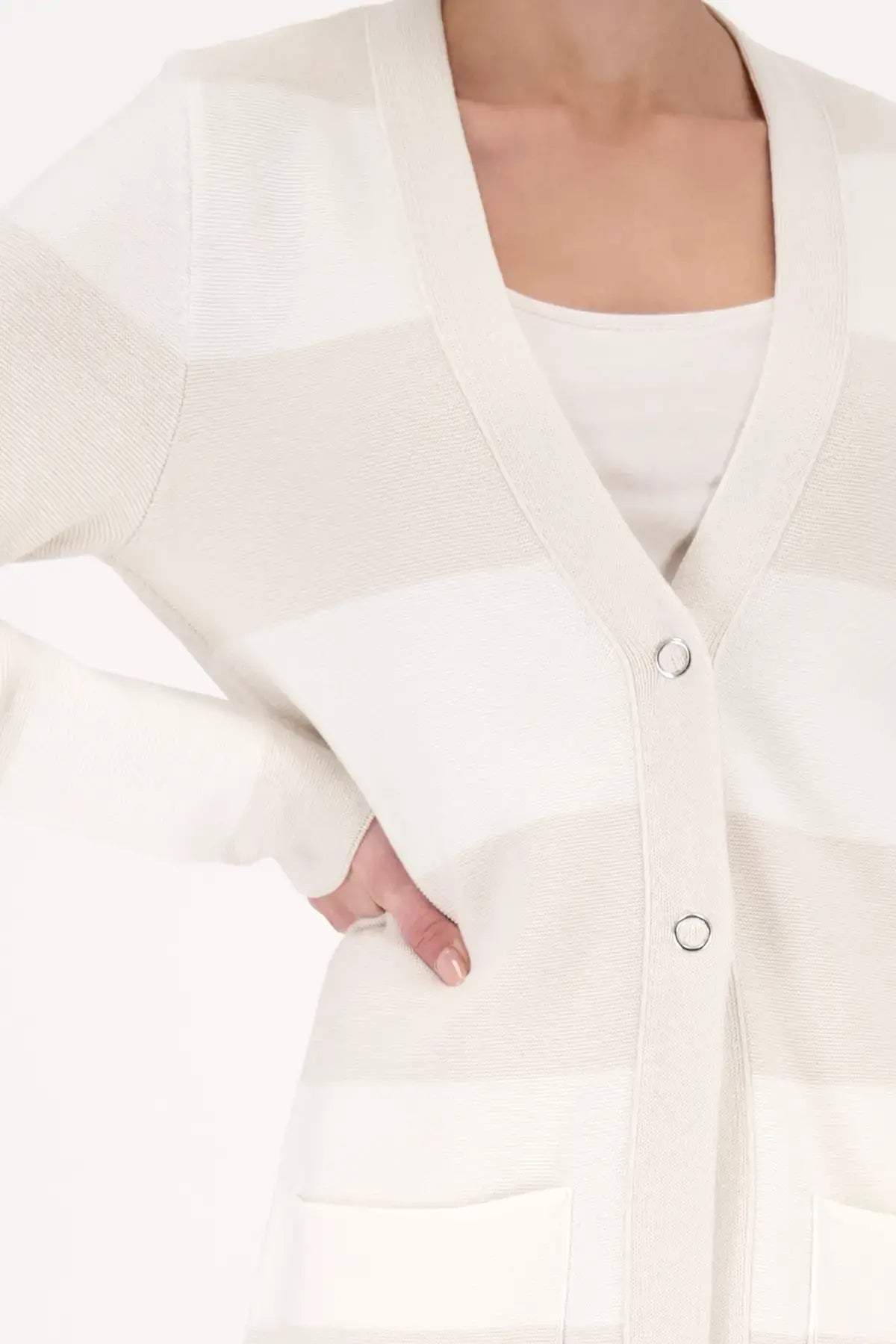 Monari Beige Blockstreifen-Strickjacke