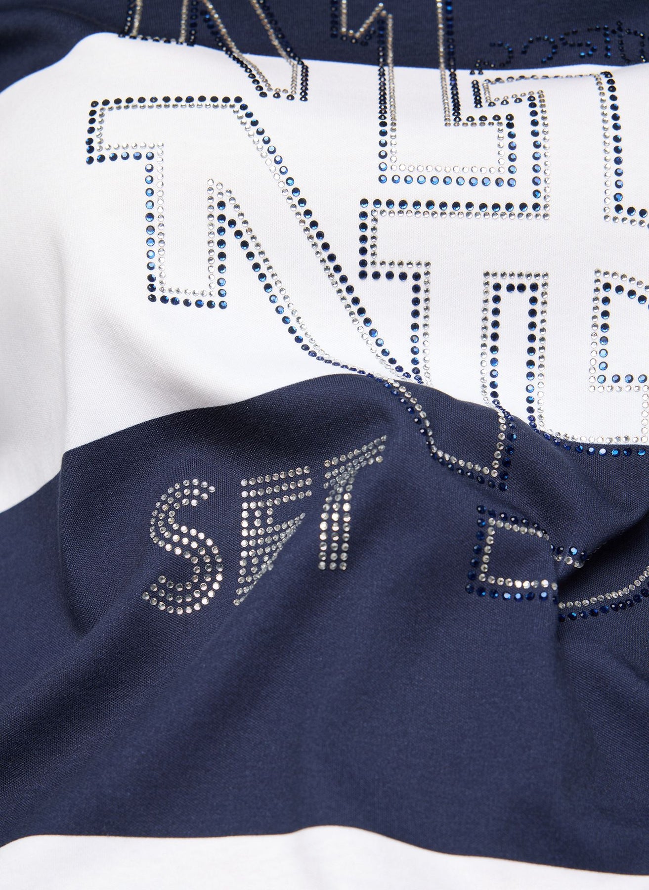 • Strassbesetzte Schriftzüge auf der Vorderseite