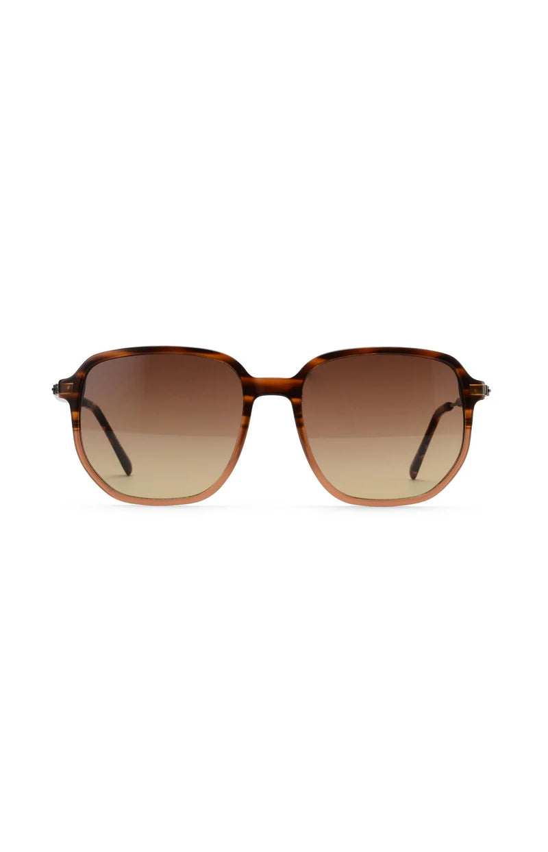 Diese stilvolle Sonnenbrille aus handpoliertem Acetat besticht durch ihren leichten Rahmen in dezenter, quadratischer Form. Feine Metallfedern mit luxuriösen Flexscharnieren sorgen für einen bequemen und sicheren Sitz. Die braunen Verlaufsgläser mit UV400-Schutz bieten einen eleganten Look und optimalen Schutz. Ein zeitloses Modell mit Vintage-Flair – perfekt für jeden Anlass.
